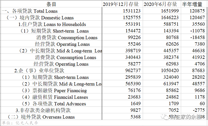 这就要用到央行另外公布的一份数据:金融机构人民币信贷收支表。