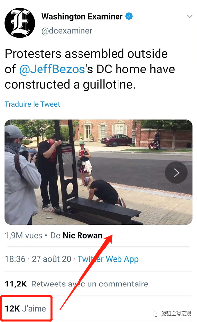 最近,示威者在Bezos家门口装断头台表示抗议。