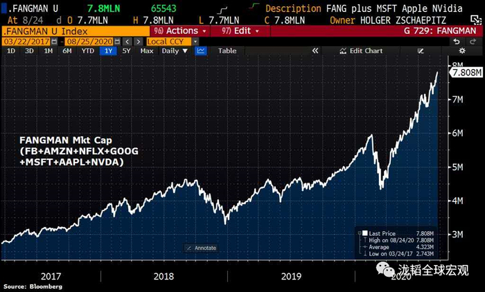 2020年,科技股的行情已经集中于FAMNNG,或FAAAMNNG,或FANG+细分板块(为了方便,我们统称FANG+),虽然阿猫阿狗也鸡犬升天,但市值主要在FANG+膨胀。