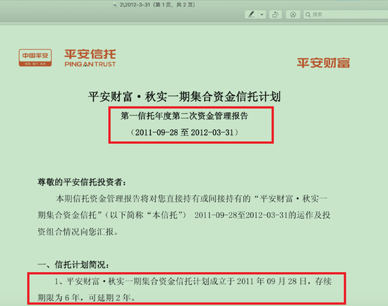 向《红周刊》记者报料的信托投资人表示,其初始投资100万元,几年时间过去,最终收到的本金+收益却仅有105万元。目前,该投资人已向深圳福田区法院起诉平安信托和春华资本。