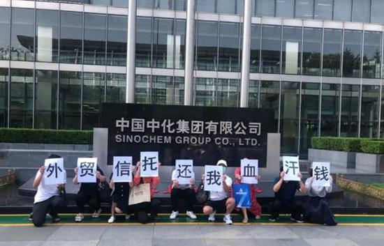 8月28日,多名投资人来到外贸信托控股方中石化楼下,手举横幅,高呼“外贸信托还钱”,这些投资人都购买了底层资产为“海发医药”的信托产品。“592.58万元撬动18.84亿资金”背后是350多个投资人的愤怒”。