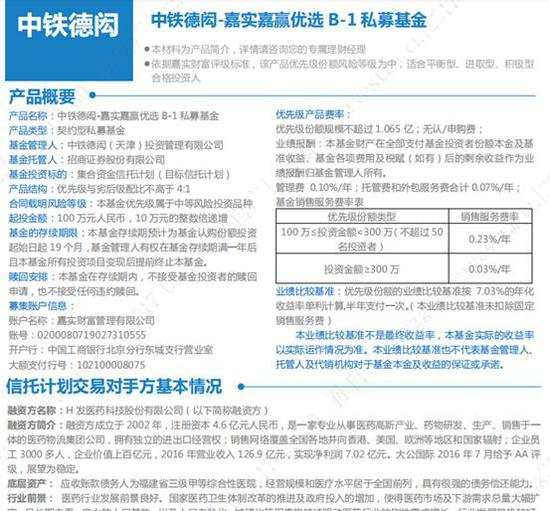 外贸信托融资3.79亿通过中铁德闳B-1私募基金产品实现的,由嘉实财富代为销售。