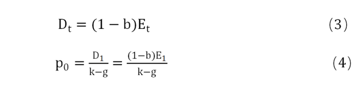 假设我们每期公司的盈利都按一定比例(1-b)来分配股利,其中b表示盈利留存比例,E表示公司收益,此时股利和股票理论价格则可以表示为:
