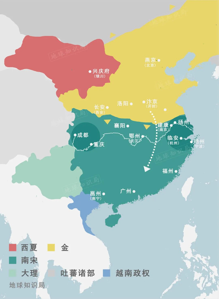 人口的大规模南迁,带动了中国农业重心的南移。唐朝时代,扬州和成都并有“扬一益二”之称,它们身后的江南和巴蜀,都是举足轻重的稻米粮仓。靖康之役,北宋灭亡,宋室的南迁,让中国经济重心彻底转移到南方。这也意味着,长江流域成为了中国最重要的“粮仓”。