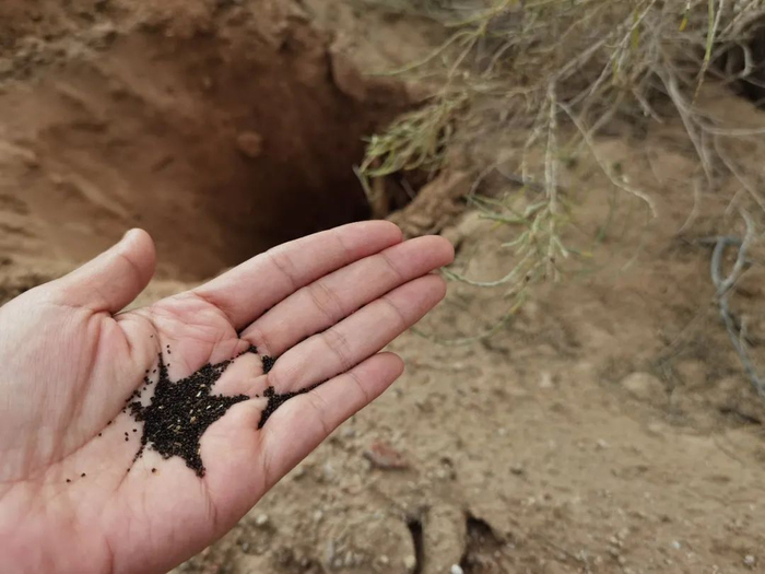 其原因透过显微镜才知道,原来肉苁蓉种子圆圆的,中央有个小洞,梭梭树极细的根部正好穿越这个小洞,肉苁蓉才算“寄居”成活,这种概率就像精子致与卵子受精一样稀缺,一般洒下几百颗种子才有两三颗活下来,然后经过两到三年的生长就成为了我们今天挖掘到喜人的“肉苁蓉”。