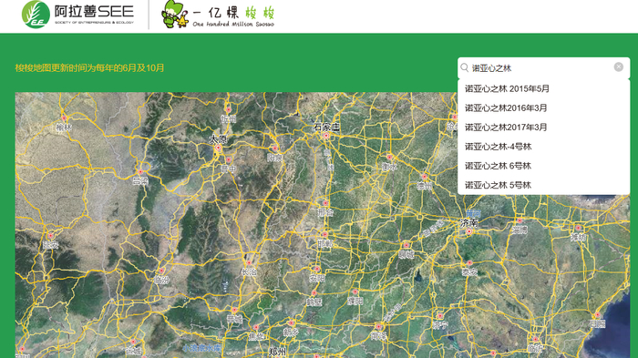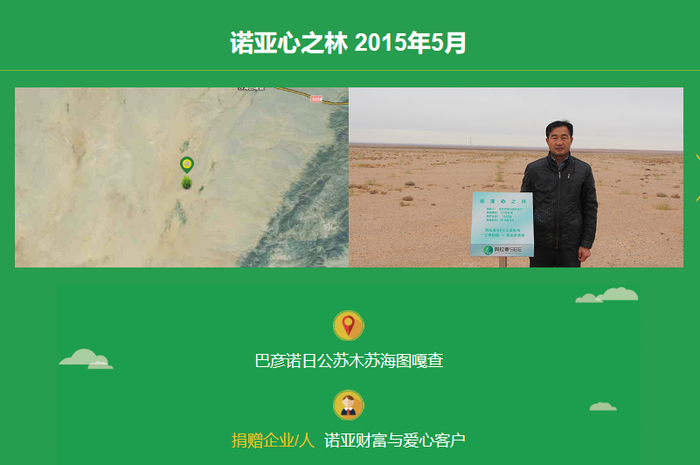 别着急, “诺亚心之林”建设我们会持续建设!您现在就可以通过SEE网站“一亿棵梭梭树”专题页面(http://suosuo.see.org.cn/)“从地标看到你爱”看到每一片树林和它的状况!