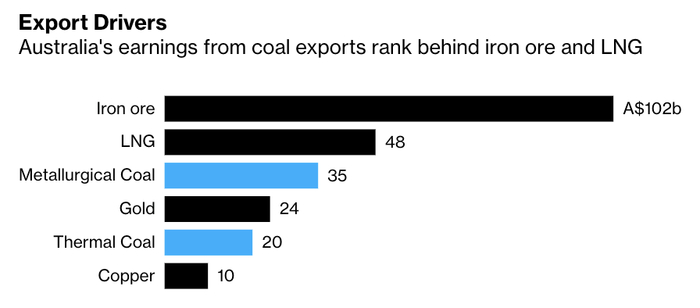 而煤炭则不然。煤炭出口是澳大利亚的重要外汇来源,占商品总出口约15%,对澳大利亚而言可以说是仅次于铁矿石的命门所在。