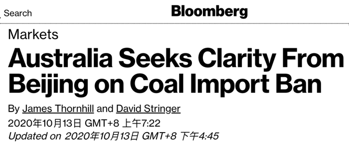 [1]. Australia Seeks Clarity From Beijing on Coal Import Ban, Bloomberg
