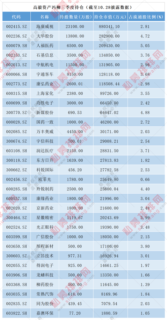 高毅资产、彤源投资、正心谷资本、林园投资、淡水泉、千合资本、幻方量化、盘京投资、于翼资产、银叶投资、景林资产、迎水投资、九坤投资最新持股明细见下表: