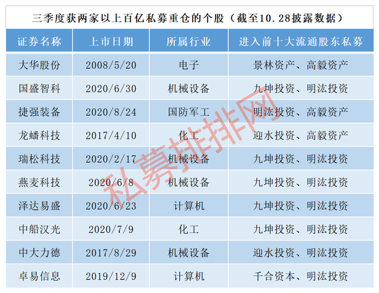 百亿私募还敢于出手次新股。根据私募排排网的统计,截至最新公布的数据,百亿私募在三季度至少重仓了46只次新股。明汯投资与九坤投资等量化私募更是进入多只次新股的前十大流通,不过从持仓市值来看,配置比例并不高。