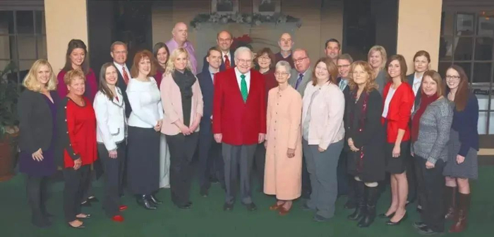 伯克希尔·哈撒韦的投资组合公司有近40万名员工,但其实际的总部只有20多名员工。这是世界上最大的公司之一2014年圣诞派对的照片: