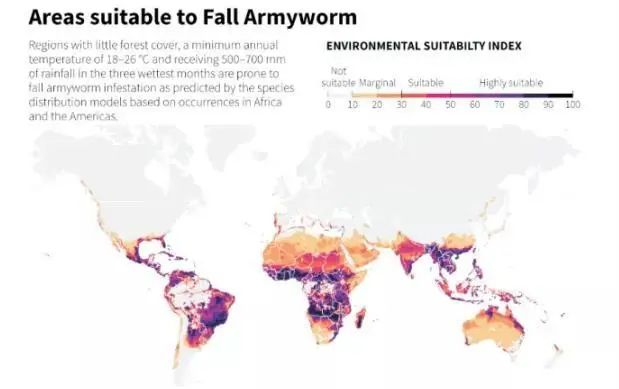 刘传熙 草地贪夜蛾原生美洲,2016年之前,这个物种对于非洲、亚洲这些地区来说是完全陌生的;但是,非洲以及亚洲中低纬度地区的气候又十分适宜草地贪夜蛾的长期生存且缺乏足够的天敌,因此对于上述地区玉米的威胁极大。