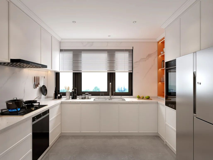 如今,厨房已发展为具有多种功能的居室空间。厨房环境应整洁卫生,光线充足,通风良好,避免存在淤积秽气的死角,开门最好不要见灶,也不宜与卫生间相邻。