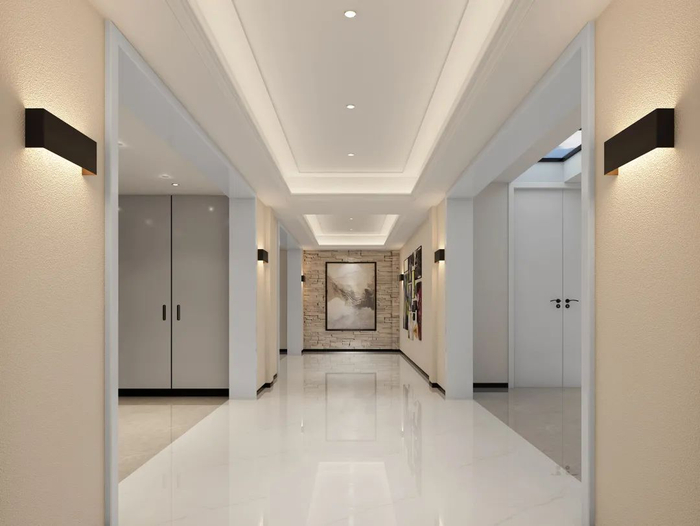 玄关走廊是反映主人气质的“脸面”,设计应与整体风格相匹配,点、线、面结合。