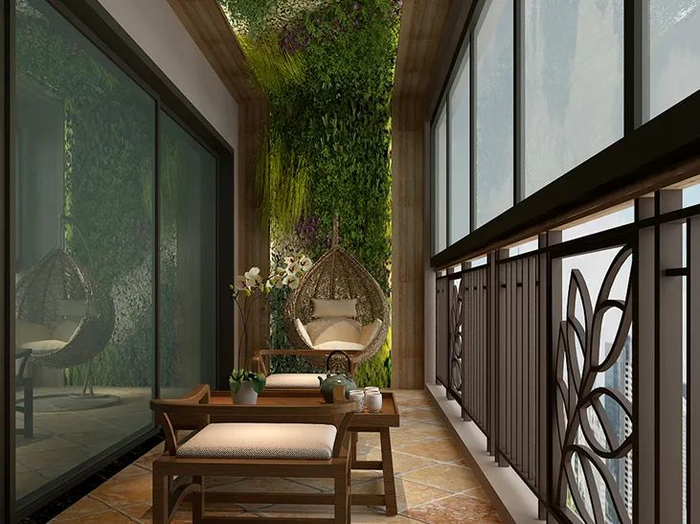 阳台不宜直对大门、街道,易打乱和平的生命磁场。主人可以在阳台上种植花草营造园林小空间,如万年青、金钱树、铁树等等,为家居增添自然景致之余,又有风水生旺作用。