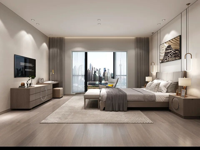 卧室是隐私性最强的空间,讲究安静和隐秘性。在布置上,宜实不宜虚,床应靠墙,同时忌横梁压床。