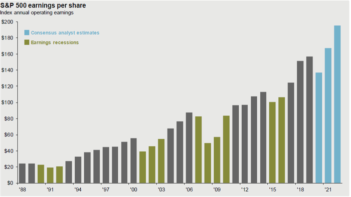 那么如何回顾美股动荡的2020年,又如何展望新的一年呢?我们今天翻译总结了JP Morgan Asset Management的年度报告。这份报告每一个季度的更新我们都有翻译。今天我们挑选一些有意思的图文内容和大家分享!
