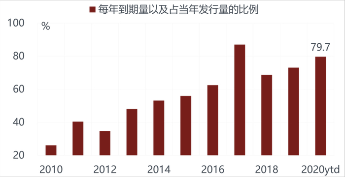 这几年企业发债为了节省成本缩短发债期限,造成每年的发债量很多都是用来滚动到期量。以今年为例,80%的新发债是为了应对到期。到明年再融资的压力仍然非常大,而整个信用债的存量当中,接近90%是地方的国有企业。这些地方国有企业以前在市场上发债是没有问题的,大家都会愿意买,现在大家就会去想哪些企业可能有问题,就不再是照单全买的思路。在这样的状况下,明年信用债市场的再融资风险是在上升的,有大量的债券要到期,如果不能够发新债出来,老债的偿还也会有问题。