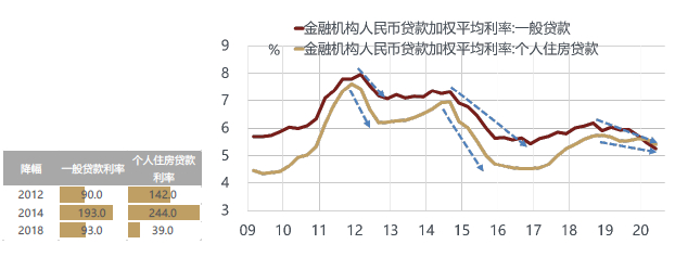 这一次的政策宽松对房地产的溢出效应是比较弱的,尽管大家在一线城市感受到房地产市场还是非常热的,但是不是所有的城市房价都在上涨,因为在疫情期间,房贷相关的政策并没有做大幅度的放松,没有降低居民的首付比率,也没有大幅度下调房贷利率。过去的宽松周期当中房贷利率的降幅一般都会大于企业贷款利率的降幅,只有这一次房贷利率降幅小于企业的降幅,也就是说这一次在政策的宽松层面是把资金往实体企业去引导。央行提出来定向宽松,尽量不要让房地产企业去受益,今年受益最大的是制造类企业。