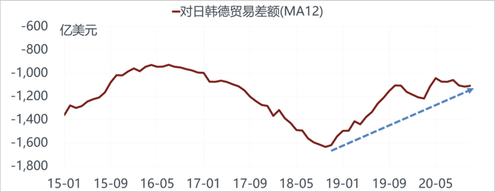 拉动今年中国出口份额增长的主要原因确实跟疫情有一些关系,但是从结构上来看,可以看到过去几年在人民币贬值的过程中,国内产业结构的调整已基本到位,随着数字化智能化的广泛运用,中国企业的管理效率明显提升,产品已经可以适应更高的汇率、在人民币更贵的环境下进行出口。我们看到一些有意思的现象,比如中国对日本、韩国、德国这些出口含金量和附加值更高的经济体,现在逆差开始缩窄,进口替代正在发生。我们对承接产业转移的、相对低成本低收入的东南亚经济体来讲,仍然保持了很强的顺差优势。虽然我们把一部分产业转移过去了,但是当地的老百姓,通过这些产业转移创造的就业机会变得富裕之后,会买车、买家电、买手机,这些产品仍然从中国购买,跟当年中国承接了日本和韩国的产业份额,中国老百姓也开始从日韩进口家电产品一样。中国现在无论是在高端还是中低端,都能维持一定的竞争力优势。