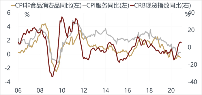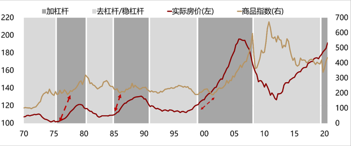 商品:海外周期上行,尤其美国居民正在主动加大地产配置,会带动商品需求。商品投资机会相对股票和债券会更大,与海外相关的商品表现会优于内需类品种。