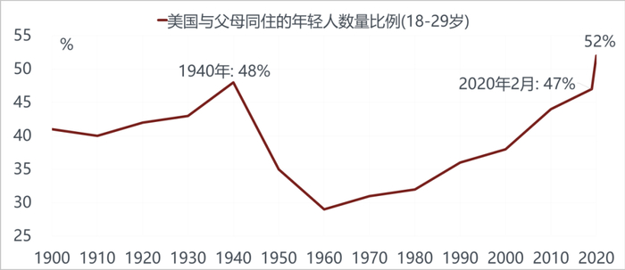 美国的人口结构和欧洲、东亚相比有一个优势,有持续大量的移民,并且主要的移民来自于拉丁美洲,跟欧洲在呈现穆斯林化的特征类似。所以美国人口结构并没有大家想的那么老,美国20到49岁的人口在未来15年会呈现加速上升的趋势,这类似于过去分析中国房地产周期讲的刚需,美国现在也有了刚需的情况。现在美国年轻人和父母同住的比率已经超过50%,当他组建家庭也会有买房的需求。