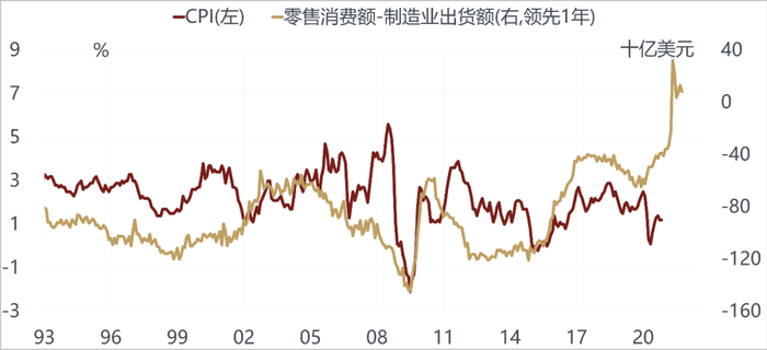 美国过去几年制造业每年的出货额没有在增加,维持在固定的水平上,消费额每年都在持续增加,即使现在疫情得到了控制,美国的制造业能够回到疫情前水平,也会出现供不应求的缺口。这也很像2003年的中国,1996-2002年,中国产能过剩,30年期国债收益率发到2.9%,之后再也没有过,那时的主流观点是中国会日本化,长期通缩,不会有通胀,然而到2003年中国的通胀在短短几个月时间内迅速的上升。美国现在也是这样,大家觉得通胀起不来,已经很长时间,实际上产能已经到瓶颈。最近国内黑色大幅上涨,主要的驱动力来自于海外需求的拉动,卷板国外价格明显高于国内,而不是与国内需求相关度高的螺纹。这一轮全球放水通胀最大的风险不是在中国,是在美国,周期最重要的推动力也不是中国,而是美国。