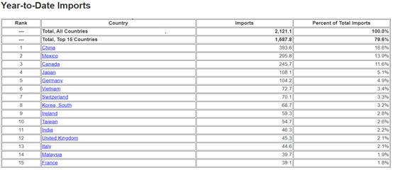 也就是说,对于我们来说,制造业领域逆差的前四位都是来自东亚和东南亚。