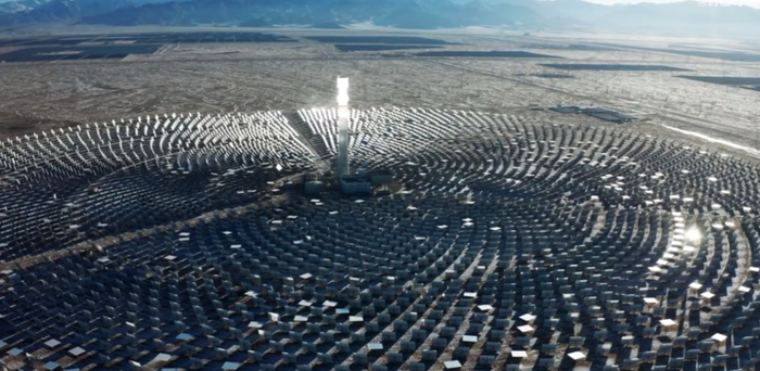 中国在发展光伏方面有优势,我们有大量的高原地区,甘肃、内蒙古、新疆等,千里无人烟,正好搞光伏,跟赛博朋克似的。比如这种: