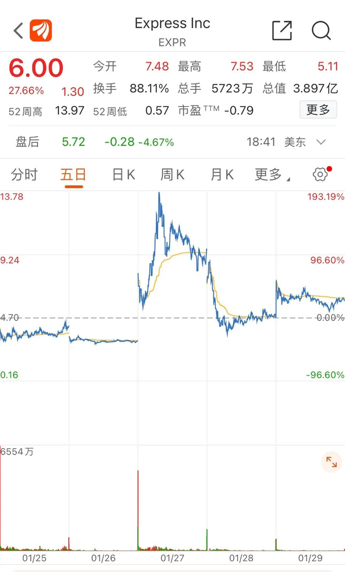 EXPRESS涨超27%。