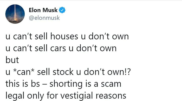 “你不能卖不属于你的房子,你不能卖不属于你的车子,但是,你‘可以’卖不属于你的股票!?这太离谱了——做空就是一场骗局。”
