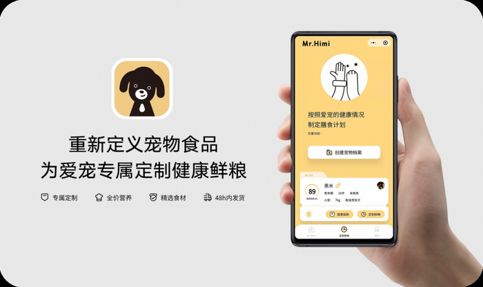 黑米先生首创“宠物鲜粮+大数据+智能算法”相结合的宠物鲜粮C2M2C柔性化定制模式。用户只需在“黑米先生”微信小程序里输入每只宠物(犬或猫)的年龄、品种、体重、生活习惯、饮食习惯、活跃程度、急慢性疾病、健康状况等信息,基于宠物营养需求和多年临床数据,精准推荐出适合宠物现阶段身体情况的鲜粮配方和专属喂养方案。“黑米先生”微信小程序还会根据宠物信息,为宠物主提供个性化、专业化的养宠指导,宠物健康提供的全周期管理服务。