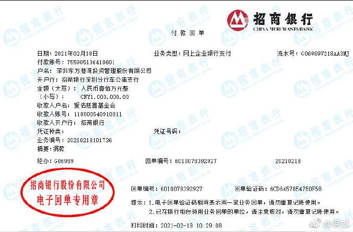 新春伊始 但斌向三大慈善基金捐款合计500万