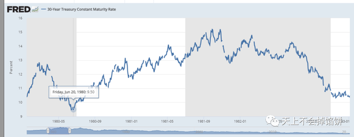 我们取1980年6月开始一段波澜起伏的利率上升后下降做例子: