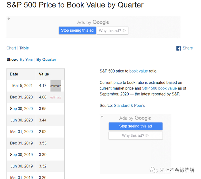最新的标普500的PB估值是 4.17,要大于Q值许多,他们的分子是一样的。