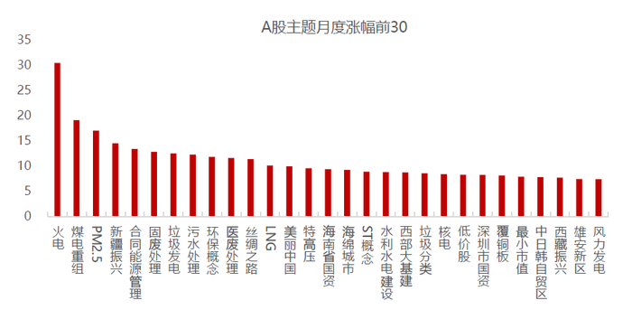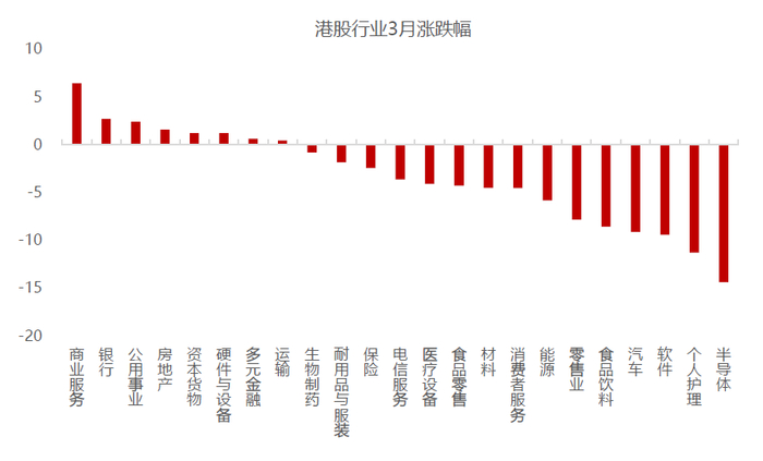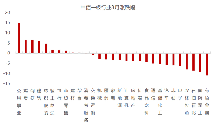 分行业看,A股上涨板块主要集中在碳中和相关板块,其中直接和绿色经济相关的公用事业上涨14.8%,领涨A股。在碳中和背景下有行业集中度提升预期的煤炭、钢铁板块也有不错表现;在新疆棉事件催化下,纺织服装也有4.7%的涨幅。与之相对,此前受益于通胀预期抬升表现较好的有色、石油石化、基础化工板块随着原材料价格下跌也出现了明显回调;业绩兑现不及预期的军工板块表现也跌幅靠前;猪瘟疫情抬头,猪价下跌导致农林牧渔板块表现不佳;电子板块受到Airpods销售不及预期影响跌幅超过6%。港股呈现和A股行业类似的表现,碳中和相关的建材、公用事业以及低估值业绩不错的银行地产板块涨幅靠前。主题方面,3月表现好的行业主题主要集中在碳中和、煤炭能源、环境治理方面。整体来看,3月市场主题驱动迹象更为明显,供给侧的影响大于需求侧,而利率快速上行的影响逐渐被消化,部分年报季报超预期的优质个股也表现较好。