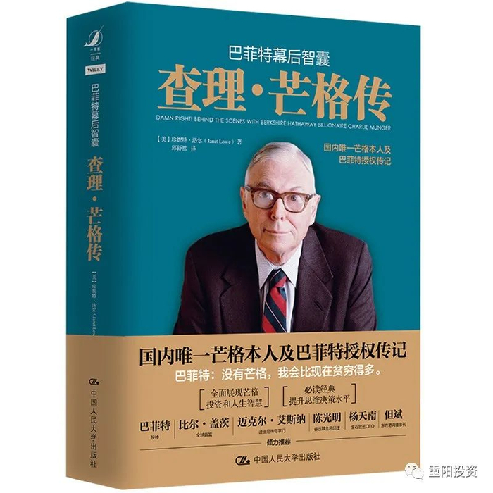 芒格老先生在中国越来越红,简直快变成“网红”了。他的每一次发言都被广泛传播,许多已经变成了金科玉律,有关他的著作一版再版,这本他唯一授权,由中国人民大学出版社出版的《巴菲特幕后智囊——查理·芒格传》今年已经出到了第3版。