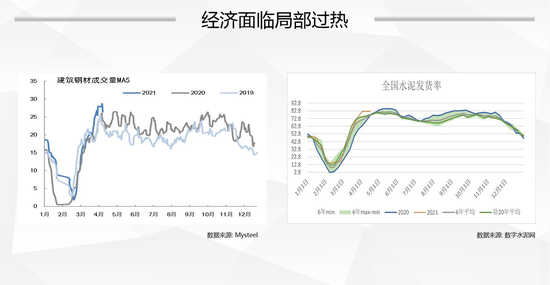 再看局部,我们认为现在中国经济的某些局部过热的特征是非常明显的。我们用两个最重要的高频产业数据,这个就是建筑钢材的成交量,有2019年的数据,2020年的数据,2021年的数据。