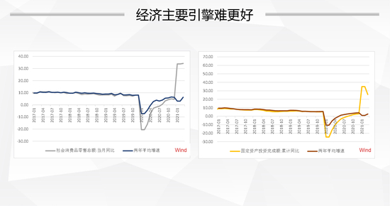 大家再看右边的图,固定资产投资也是一样的。按两年来看,增速已经明显的下了个台阶,也就是说经济主要的引擎很难再更好了,而投资投的是未来。