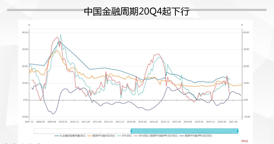 首先我们来看一下金融周期。客观地讲,本轮的金融周期其实在去年第4季度就已经见顶,开始下行。