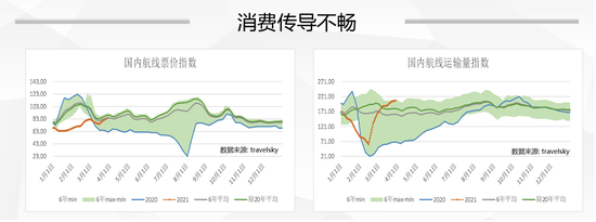 我们再看一个数据来证明我刚才的观点。这是航空的运量指数以及票价指数,让我们看右边的图,其实清明假期前后出行的人数大幅增长,已经超过了多年的平均。