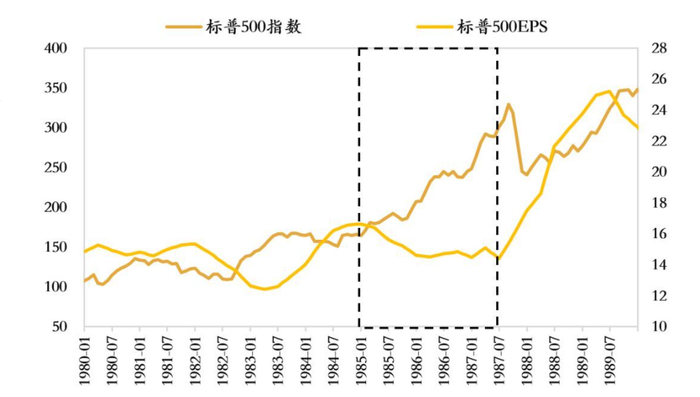 原因很简单,因为资产价格维持了稳定,同期企业利润快速改善,表现就是期间标普500每股盈利(EPS)稳步上扬。企业净利增加,才有余力发放工资,提高工人收入,同时资产价格稳定,贫富差距得到控制,中下阶层有很强的财富获得感。