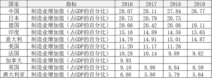 回到本文,如果对比制造业产值的话,我在表格里面放的中国+G7+澳大利亚+印度总共10个国家。