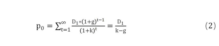 其中,Dt:在未来时期以现金形式表示的每股股票的股利;k:在一定风险程度下现金流合适的折现率,即资金成本率;p:股票的价值;t:从购买股票开始计算的年数。