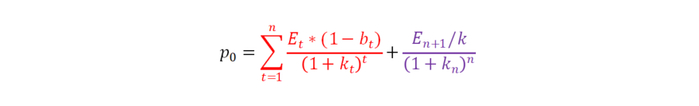 正如之前所说,如果在此第一阶段不分红或者分红极少,在估值时甚至可以省略红色部分。在此假设下则有: