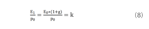 假设我们每期公司的盈利都按一定比例(1-b)来分配股利,其中b表示盈利留存比例,E表示公司收益,此时股利和股票理论价格则可以表示为: