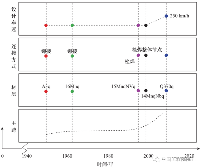 中国工程院卢春房院士科研团队在中国工程院院刊《中国工程科学》撰文,从材料、结构、使用规模等角度,对大跨度钢桥、车站屋架等铁路钢结构的发展进行了系统回顾。文章提出了我国铁路钢结构轻量化、装配化、信息化、耐久性和高韧性的技术发展趋势,总结了铁路钢结构在设计、施工、运维和材质等方面的未来重点工作。文章指出,随着应用地域和环境的多样化,铁路钢结构仍然面临一系列有待攻克的技术难题,如耐候设计、海洋恶劣环境施工、高原少维护等,需持续加大研究投入以保障关键技术突破与运用。