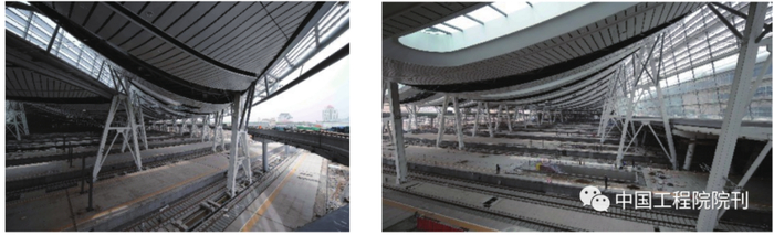 近年来,随着高速铁路的快速发展,我国的铁路车站建设也取得了长足进步,一批结构形式新颖、造型美观的车站设施相继建设完成(见表2),其中最有代表性的是南京南站和北京南站。