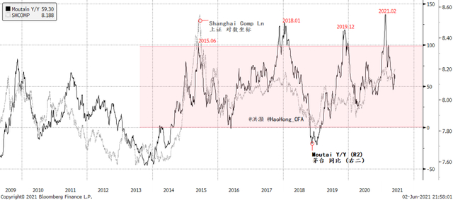 图表5: 茅台的超额收益预示着市场今年高点已过