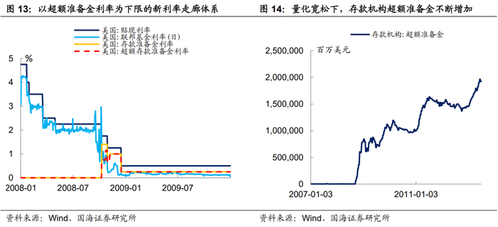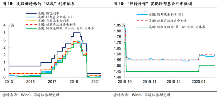 (3)2013年9月至今,独特的“双底”体系形成。美联储并不希望看到联邦基金利率下行至负区间,因为一旦联邦基金利率变为负值,货币基金将面临大规模赎回,进而引发市场流动性风险。